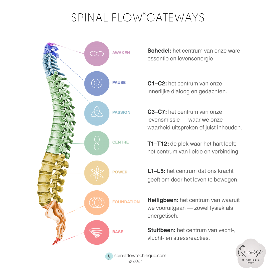 Bij Q-wise werk ik vanuit een holistische visie: lichaam, geest en ziel zijn met elkaar verbonden. Spinal Flow sluit hier prachtig bij aan, omdat het niet alleen werkt op fysiek niveau, maar ook energetisch en emotioneel. Het ondersteunt je om terug te keren naar jouw authentieke kern – wie jij werkelijk bent, voorbij de lagen van overleving, controle en conditionering.